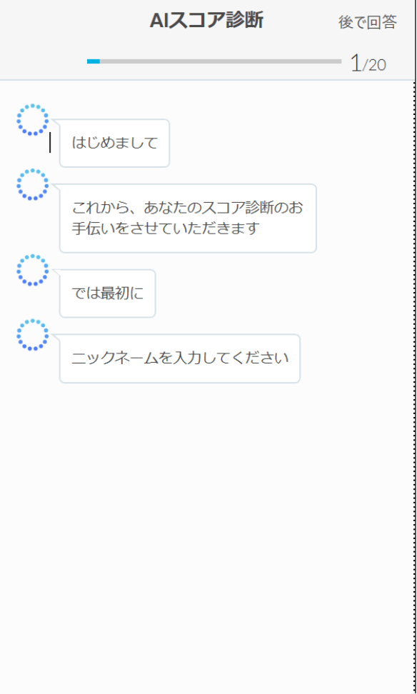 その後、LINEのような感じでAIの質問に答えていきます。なんかそれっぽいですね。